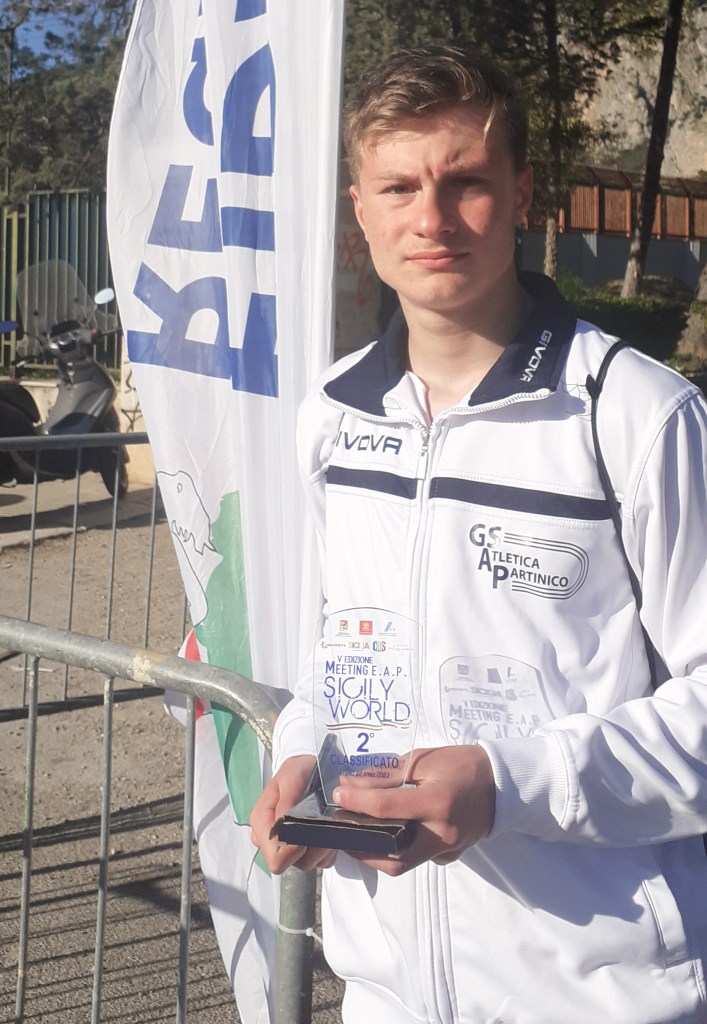 Il 22 Aprile 2023 lo Stadio delle Palme di Palermo è stato teatro dell’ ottima prestazione dell’ atleta partinicese Giuseppe Viola, cat. Cadetti. In occasione del “V° INTERNATIONAL EAP Sicily Meeting 2023”, alla sua seconda gara sulla distanza dei 300 metri, Giuseppe conquista il secondo posto con il tempo di 41″11, demolendo letteralmente il precedente personale che era di 42″92.